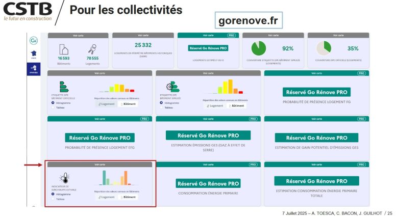 "Notre objectif est de répondre à un enjeu majeur du changement climatique : identifier les bâtiments vulnérables à la surchauffe estivale et adapter nos territoires au réchauffement climatique", souligne Alexandra Lebert, directrice de domaine d’action stratégique changement climatique au CSTB lors d’un webinaire dédié à l'ISB.