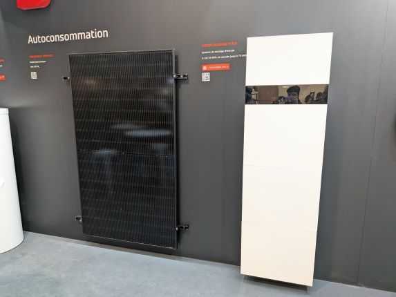 Viessmann vient de lancer le panneau solaire photovoltaïque Vitovolt 300-DG, d'une puissance maximale de 500 watts-crête, ainsi que le système de stockage d'énergie Vitocharge VX3, cascadable jusqu'à 75 kWh. © Corentin Patrigeon pour XPair