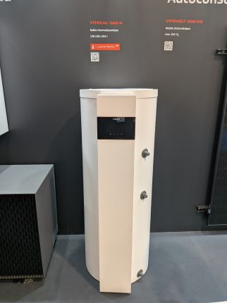 Sur Artibat 2025, Viessmann met en avant son ballon thermodynamique Vitocal 060-A. © Corentin Patrigeon pour XPair