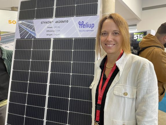 "Nous nous adressons au marché des bâtiments existants qui ont une faible capacité de charge, les bâtiments à charpente métallique ou bois construits il y a 15 ans ou plus, qui aujourd’hui sont incapables de porter le poids de panneaux conventionnels", évoque Maryline Joanny, directrice commerciale d’Heliup.