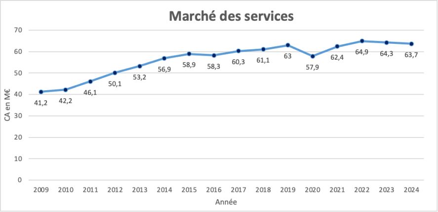 Les activités de services, pour leur part, ont légèrement diminué de 0,9%. Il s'agit ici de l'assistance technique, de la formation, des matériels de rechange, des dépannages et des contrats de maintenance ; des opérations à haute valeur ajoutée assurée par les constructeurs, industriels et réseaux d'intégrateurs.