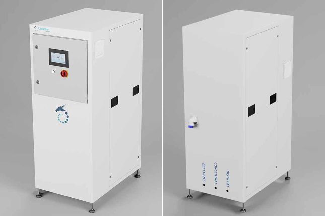 Tout ceci se déroule dans les machines Tubevap, développées par Leviathan Dynamics. Six modèles sont disponibles, avec des capacités de traitement de 20 à 640 litres d’effluent par heure, pour des puissances de raccordement électriques de 3 kVA en 230 V monophasés à 25 kVA et 400 V triphasés ; des consommations d’électricité de 42 kWh / m3 à 25 kWh / m3 et un poids de machine de 200 à 1.000 kg. © Leviathan Dynamics